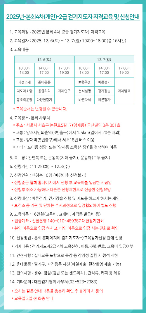 [2025년-본회4차(개인)-2급 걷기지도자 자격교육 안내]