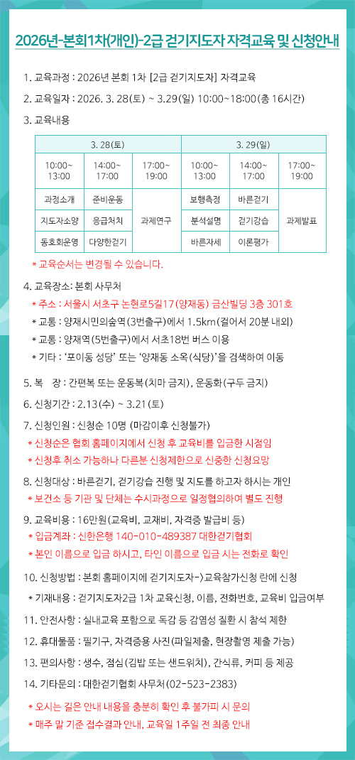 2024년-1차(전국 개인)-걷기지도자2급 자격교육 안내 및 참가 신청 접수